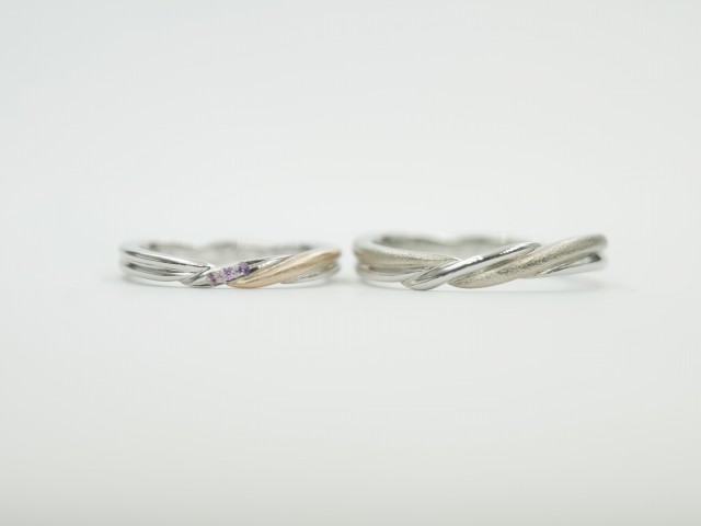 男性はプラチナとホワイトゴールドの組み合わせ。