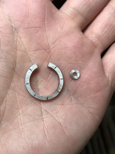 さらに小さい方のパーツを、リングサイズの内径に合わせてアールを付けておきます。