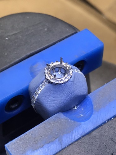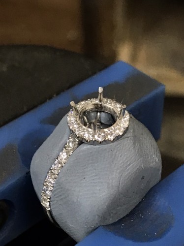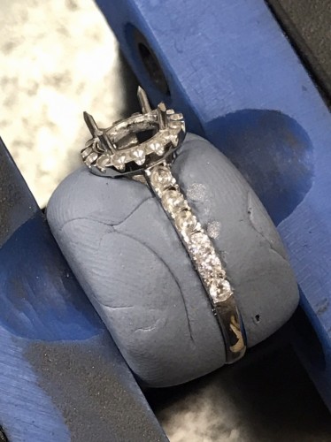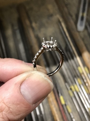 取り巻き部分のダイアを留めます。