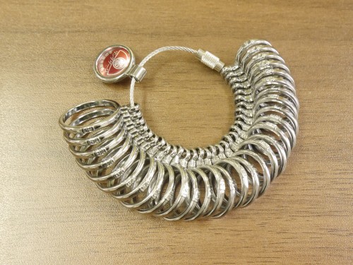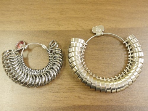 「リングゲージ」とは指のサイズを測る道具のことです。