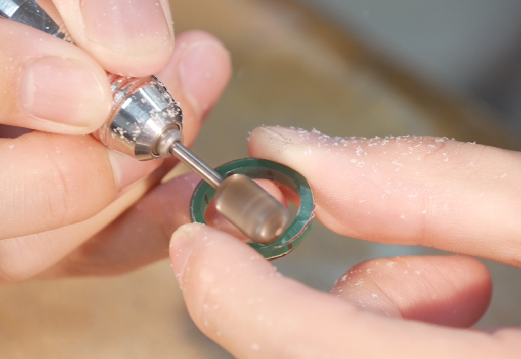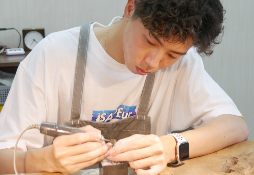 金属になったリングをリューターで磨いたり、刻印を打たれました。