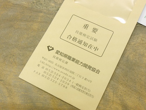 問題はこっちです。実技試験の合否通知。