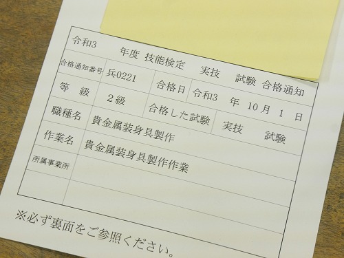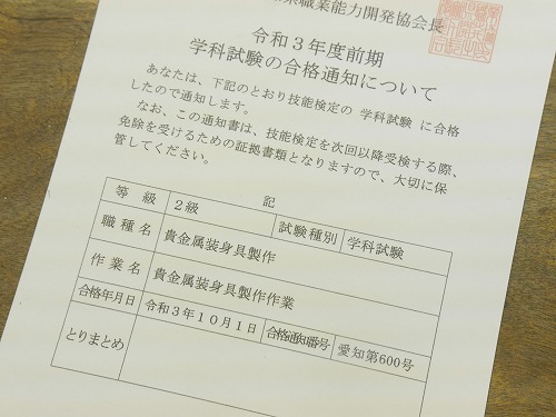 「貴金属装身具製作技能士」